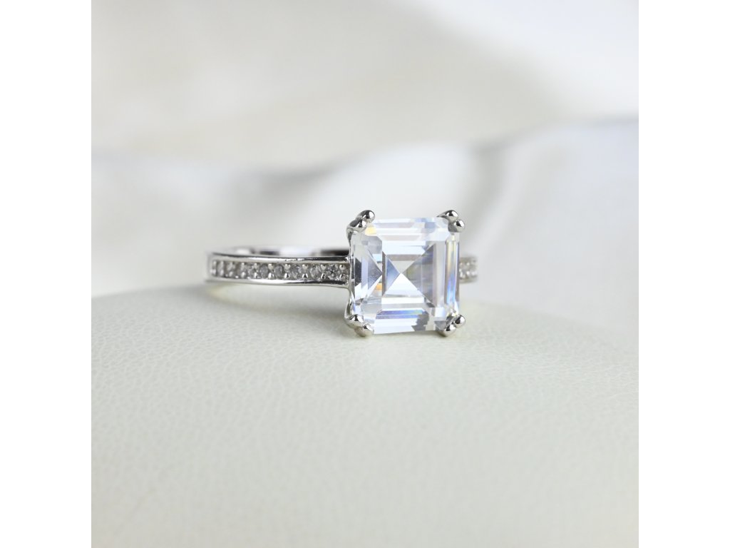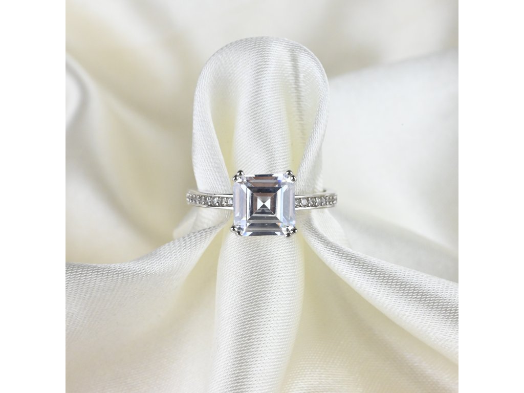 Stříbrný prsten s čirým čtvercovým zirkonem - Meucci SS388R