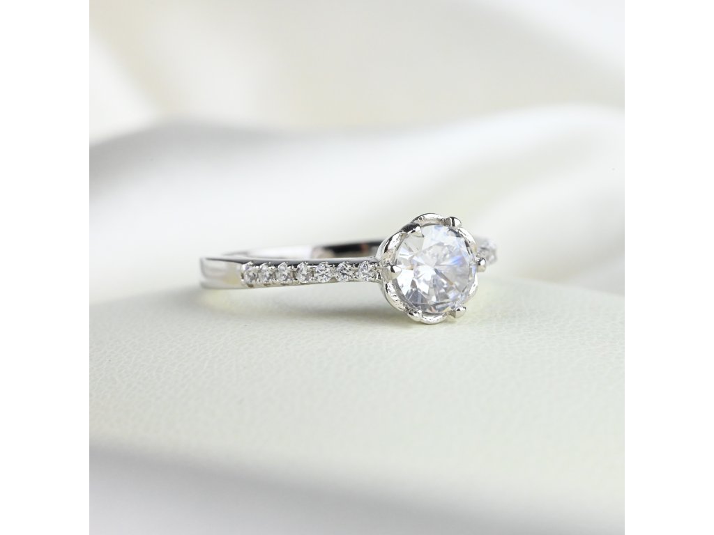 Stříbrný prsten s čirým kulatým zirkonem - Meucci SS385R