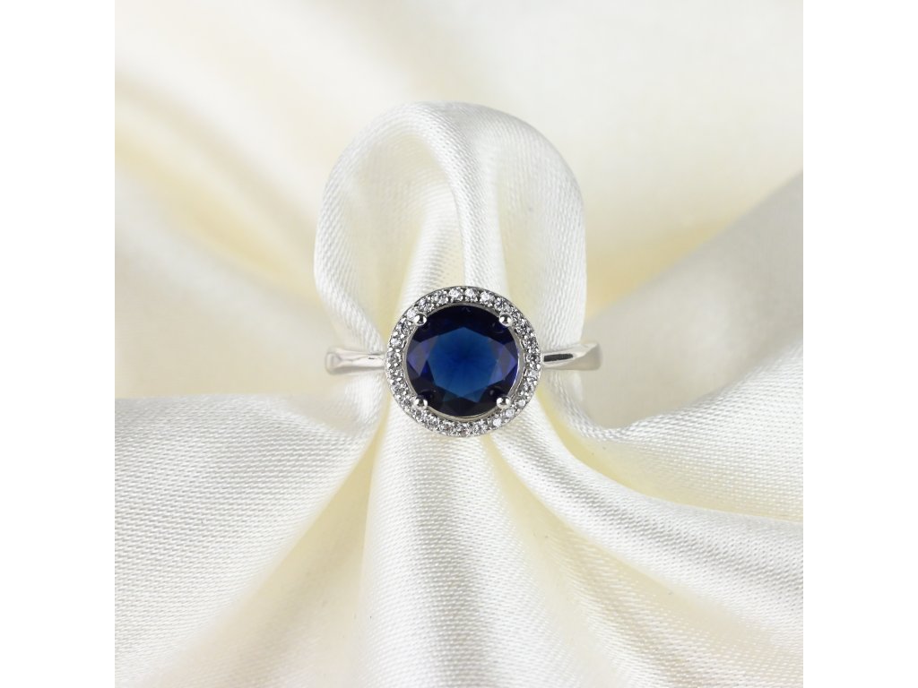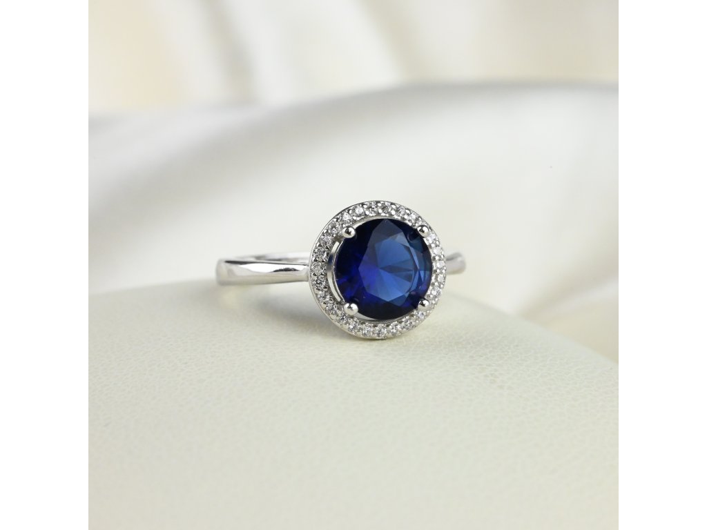 Stříbrný prsten s modrým kulatým zirkonem - Meucci SS372R