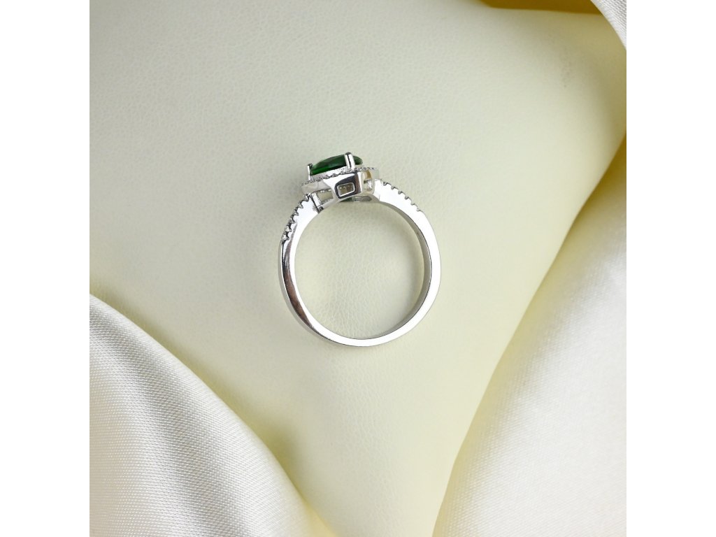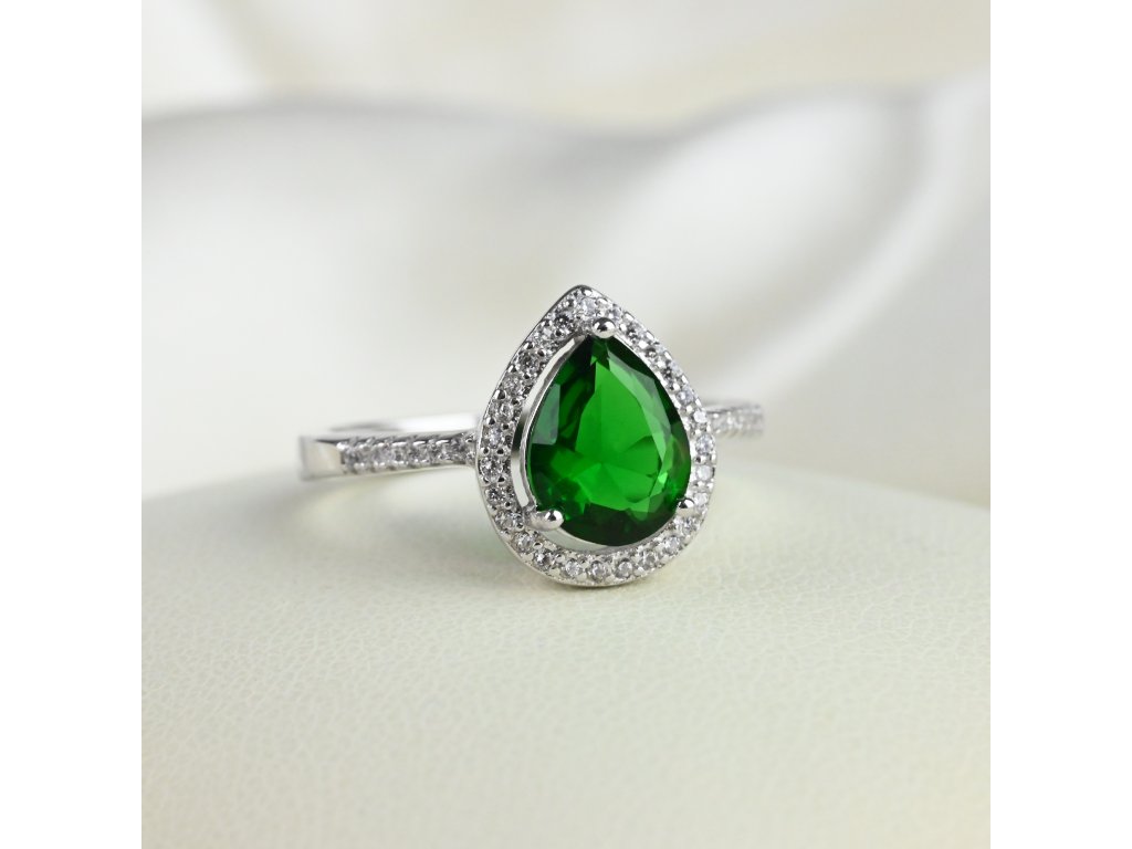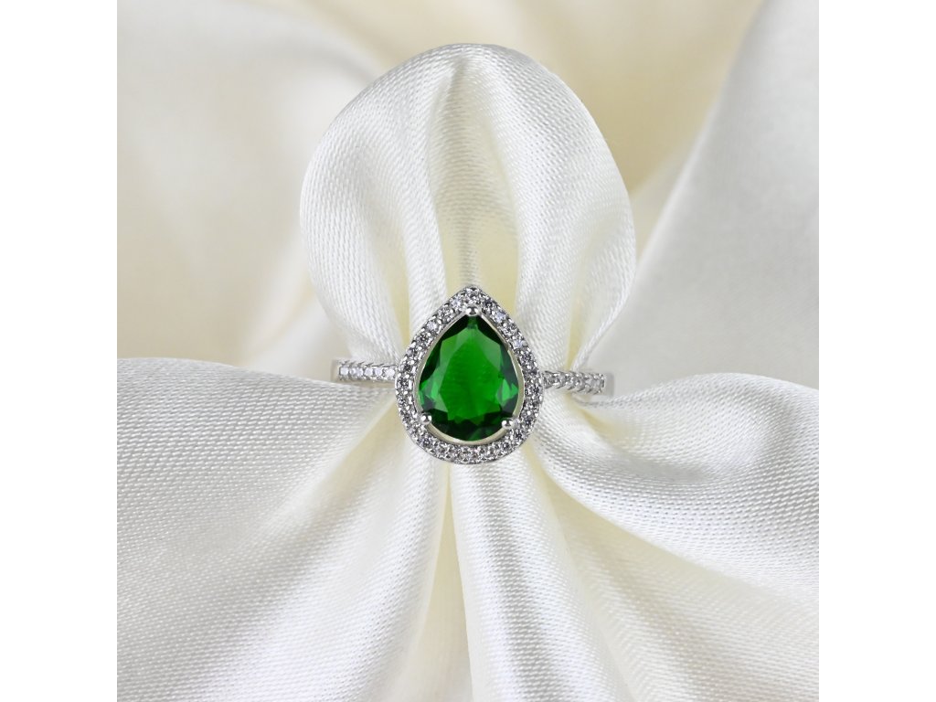 Stříbrný prsten se zeleným kapkovitým zirkonem - Meucci SS373R