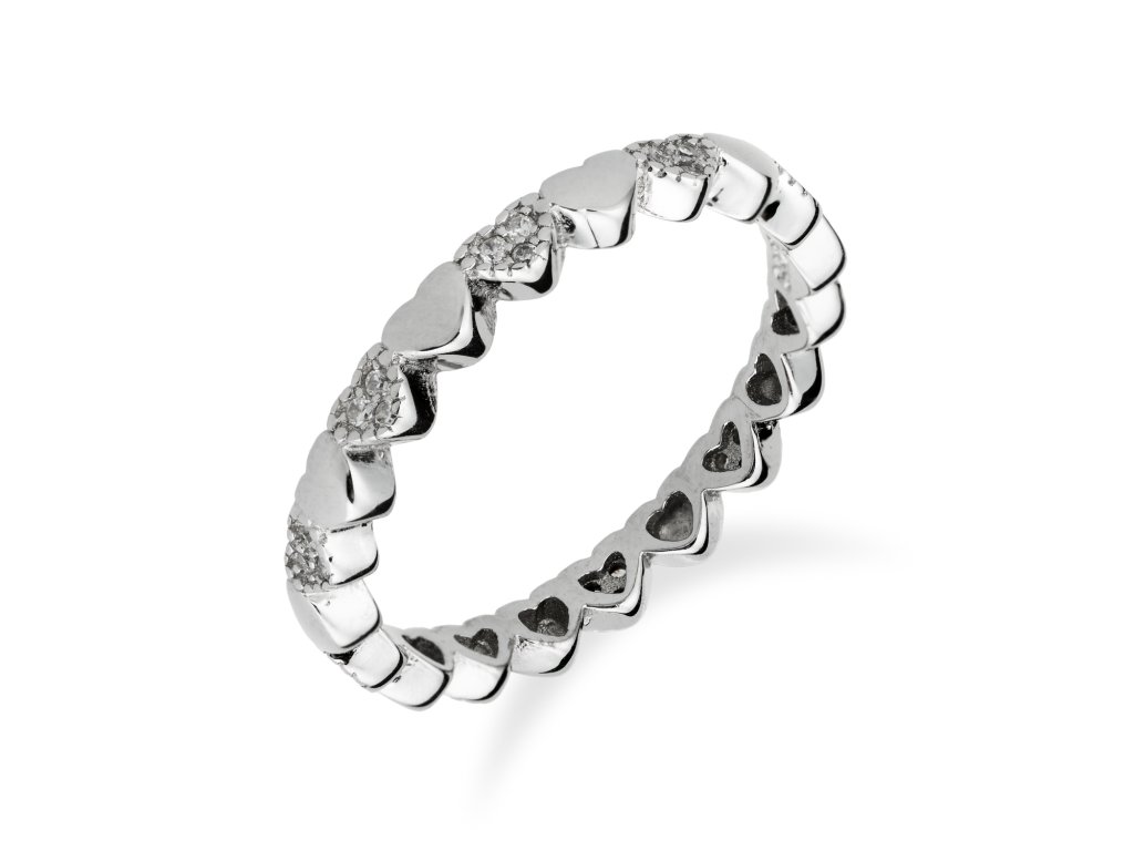 Stříbrný prstýnek se srdíčky zdobený zirkony - Meucci SR064