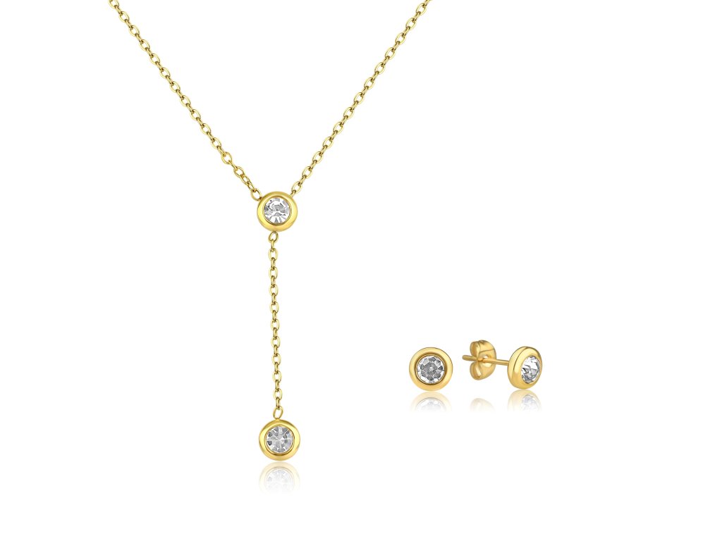 Pozlacená ocelová sada náušnic a náhrdelníku se zirkony - Meucci DS477