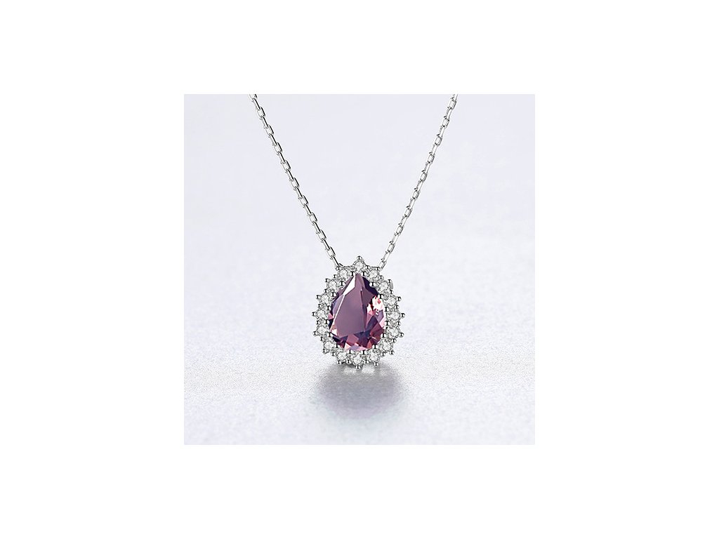 Stříbrný náhrdelník s růžovým kapkovitým zirkonem - Meucci SYN067