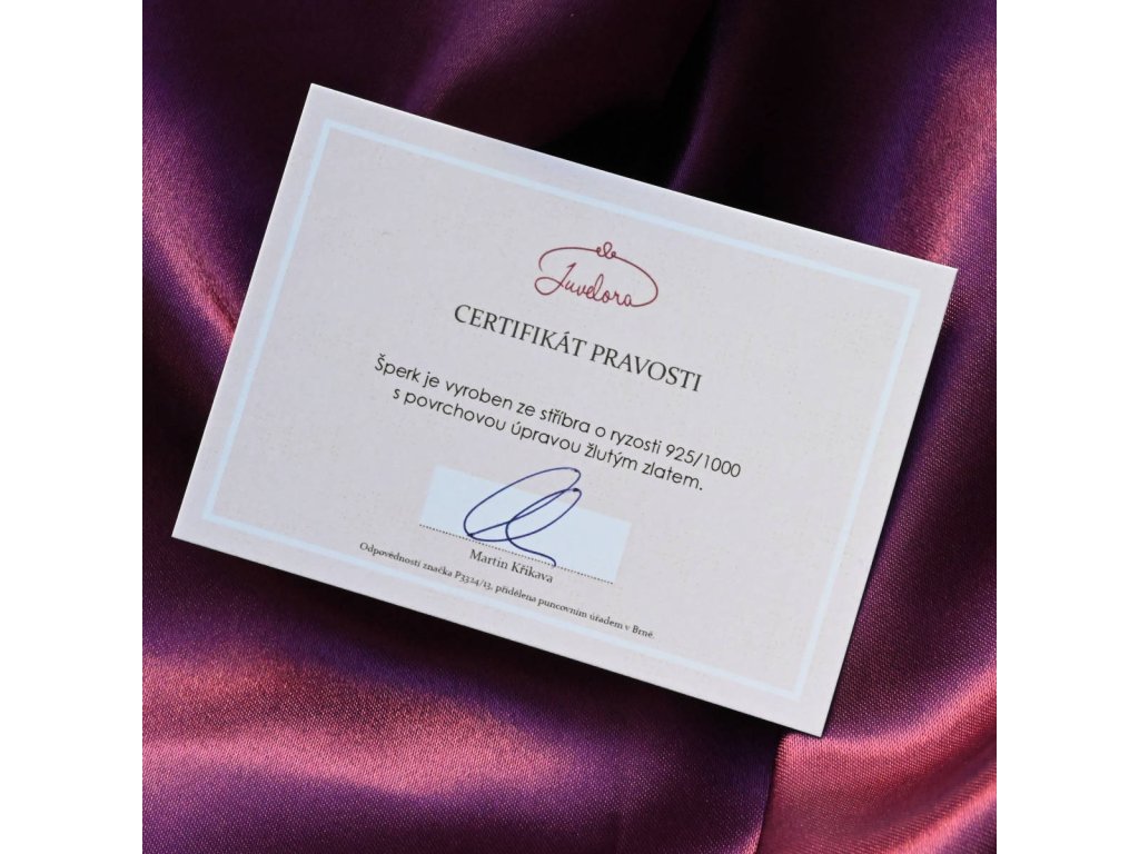 - Vyrobeno ze stříbra ryzosti 925/1000, značeno ryzostní značkou