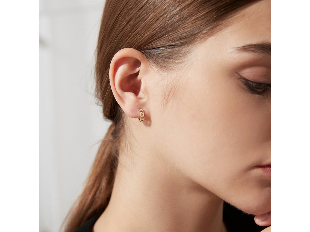 Díky kloubovému zapínání se náušnice pohodlně nasazují a bezpečně drží na uchu, přičemž zachovávají dokonalý tvar a proporce. Pozlacené stříbro dodává teplý, luxusní odstín, který zdůrazňuje detaily řetízkového vzoru a činí šperk elegantním a zároveň výrazným.