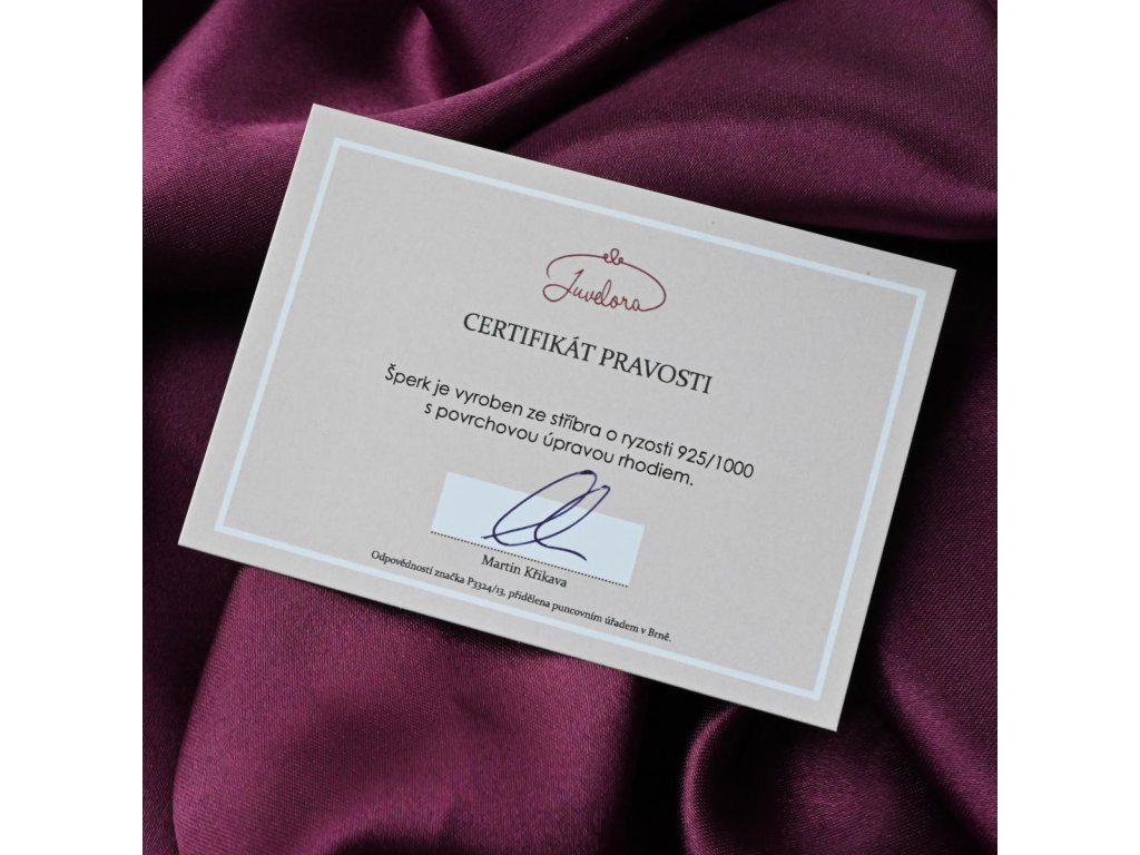 - Vyrobeno ze stříbra ryzosti 925/1000, značeno ryzostní značkou