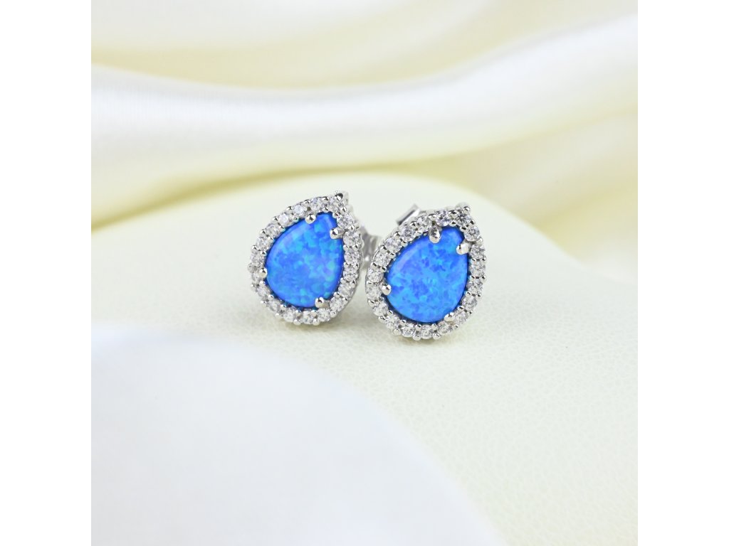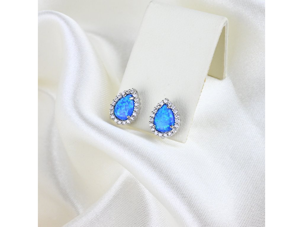 Stříbrné náušnice kapky s modrými opály - Meucci SS378E