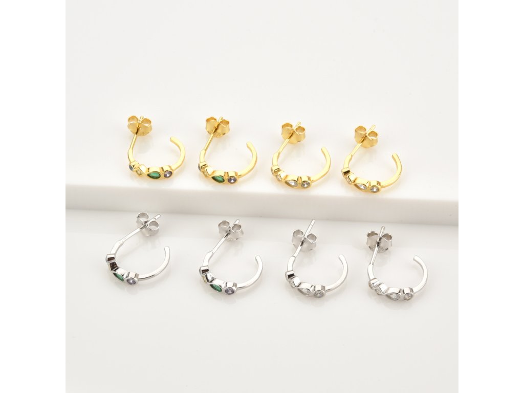 Díky puzetovému zapínání náušnice pohodlně drží na uchu, zatímco rhodiovaná povrchová úprava dodává kovu jasný stříbřitý lesk a chrání jej proti oxidaci. Kombinace stříbra a barevných zirkonů vytváří šperk, který je živý, elegantní a originální zároveň.