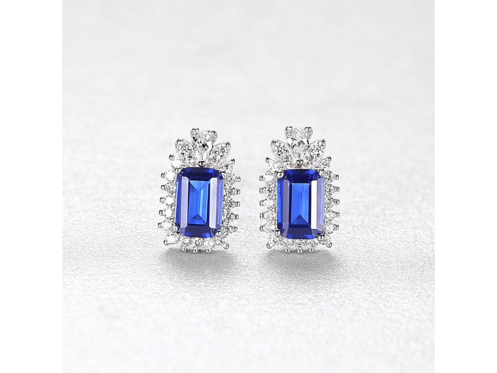 Okolo modrého zirkonu jsou zasazeny čiré zirkony, které jemně doplňují hlavní kámen a vytvářejí harmonický kontrast. Tato kombinace zvýrazňuje čistotu a jas modrého kamene a dodává náušnicím sofistikovanou vizuální hloubku, která zaujme z každého úhlu.