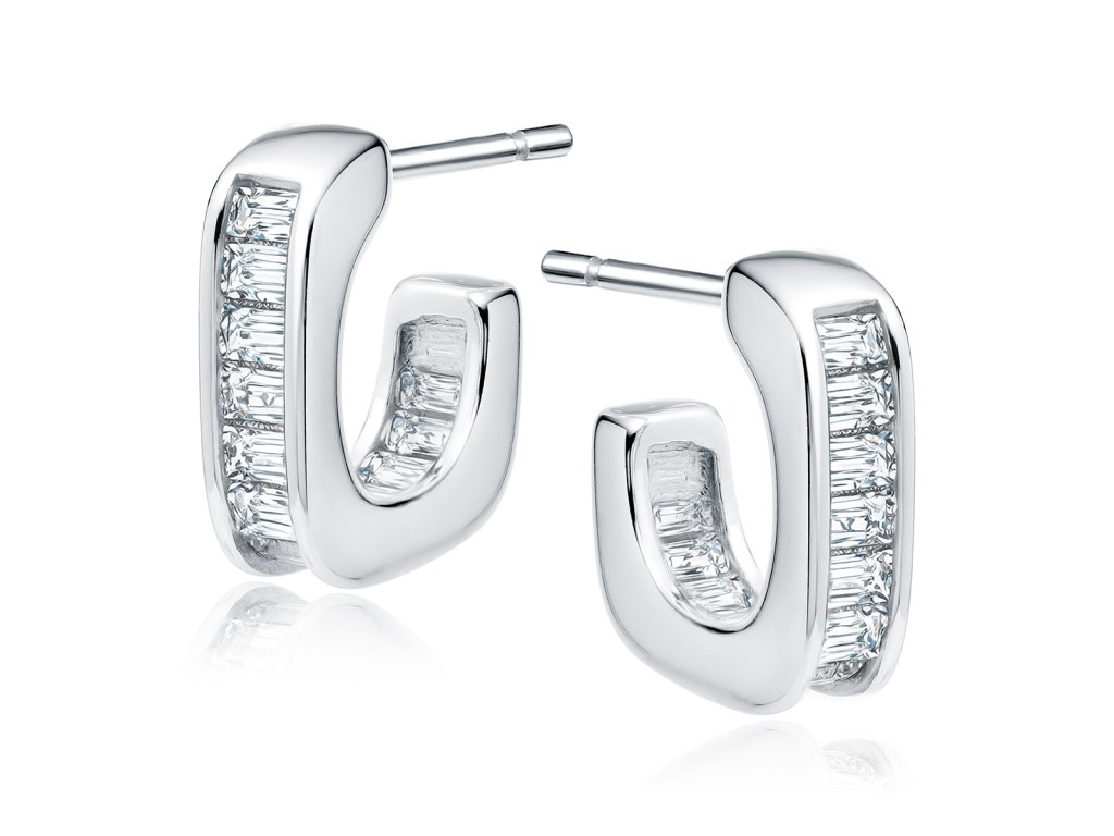 Stříbrné náušnice zakřivené půlkruhy se zirkony - Meucci SLE508
