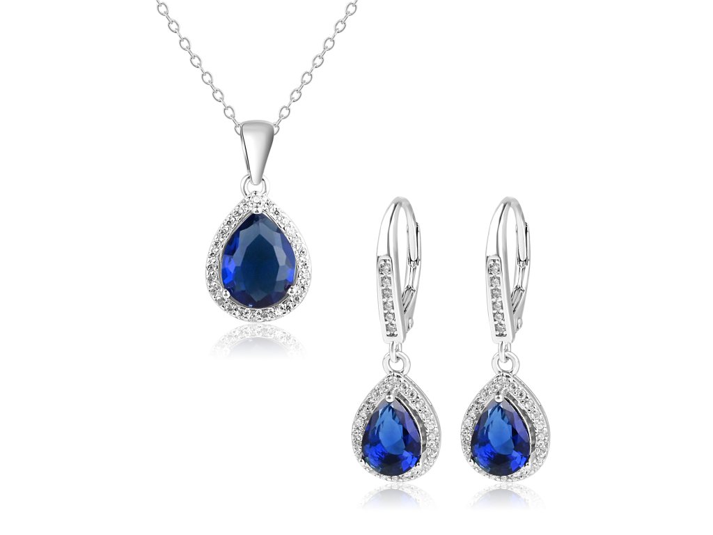 Stříbrná sada náušnic a náhrdelníku s kapkovým modrým zirkonem - Meucci SS373S