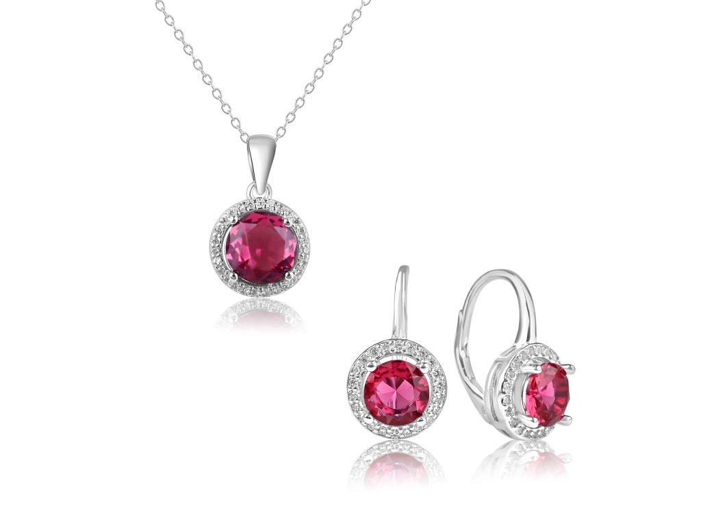 Stříbrná sada náušnic a náhrdelníku s kulatým červeným zirkonem - Meucci SS372S