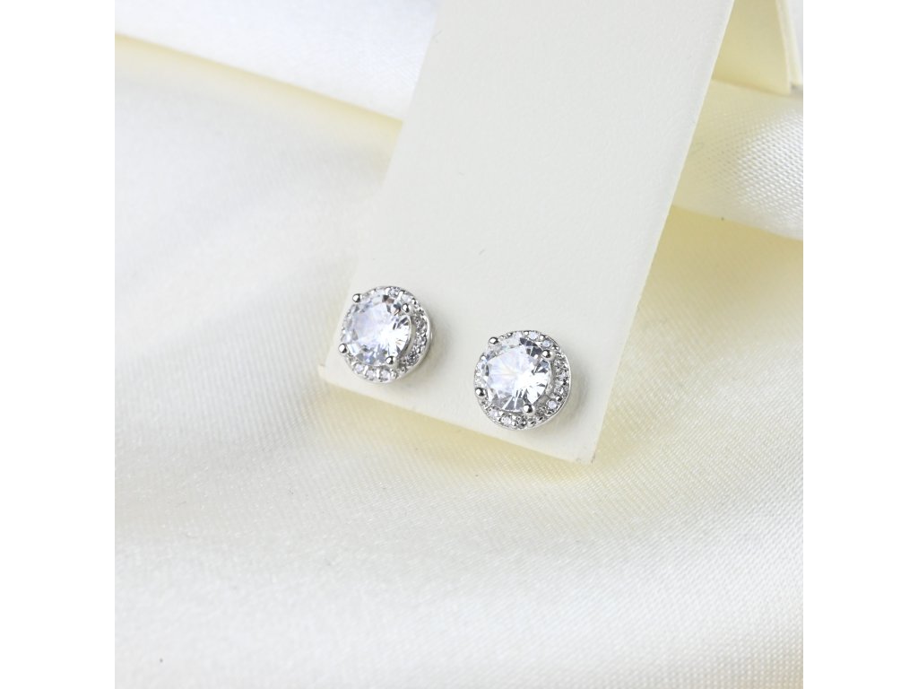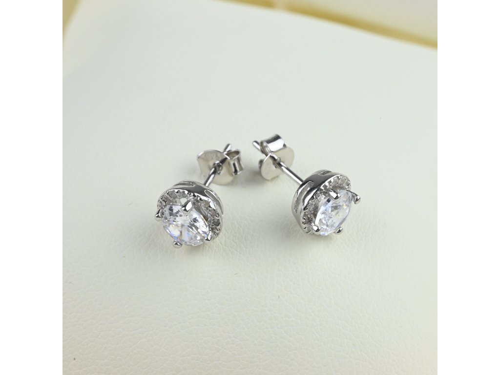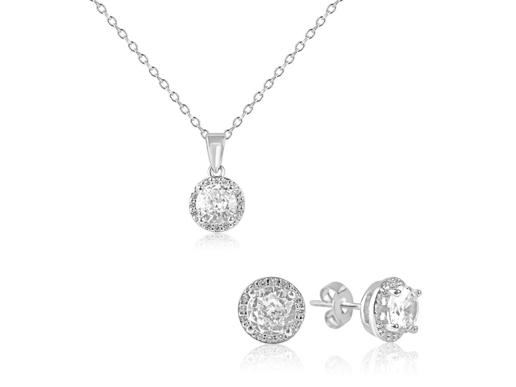 Stříbrná sada náušnic a náhrdelníku s kulatým zirkonem - Meucci SS355S
