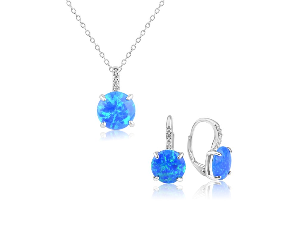 Stříbrná sada náušnic a náhrdelníku s modrým opálem a zirkony - Meucci SS375S