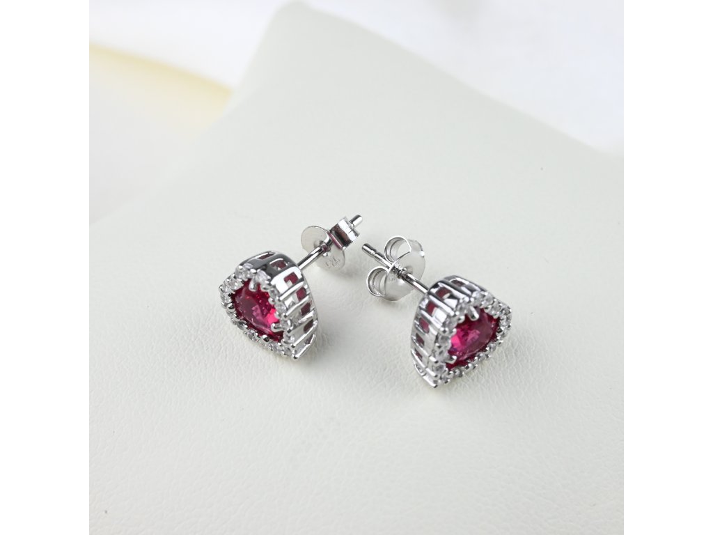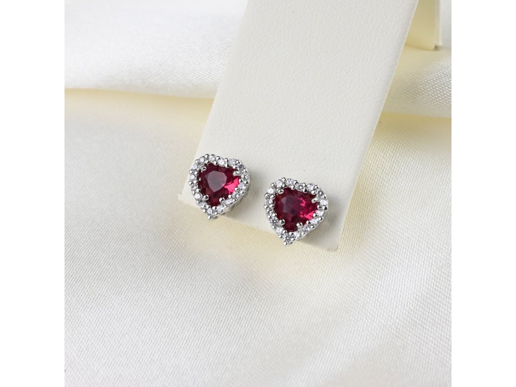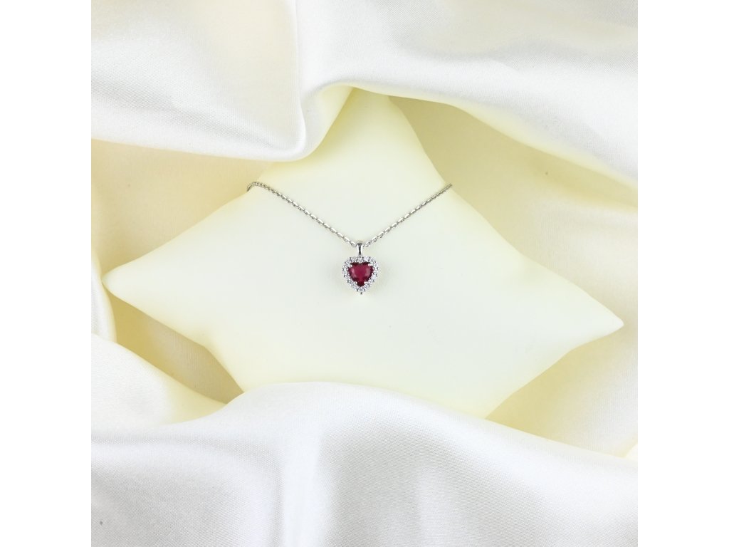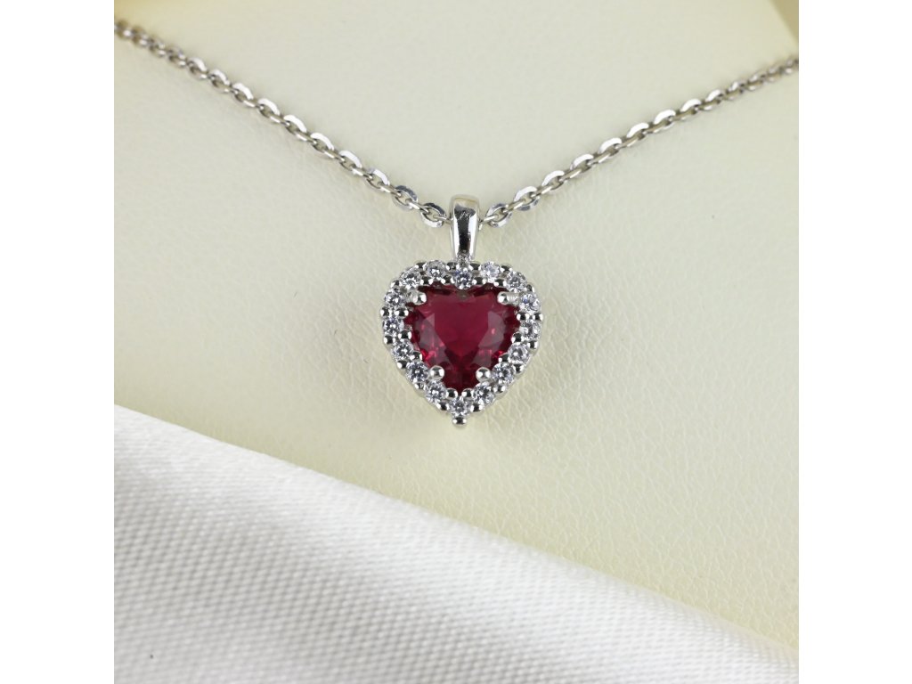 Stříbrná sada srdcových náušnic a náhrdelníku s červeným zirkonem - Meucci SS368S