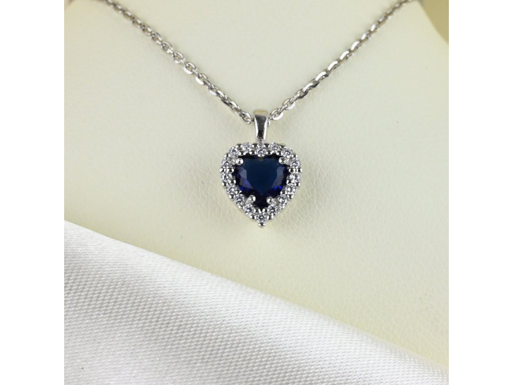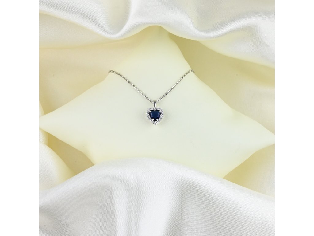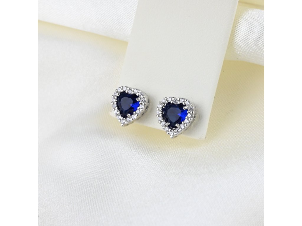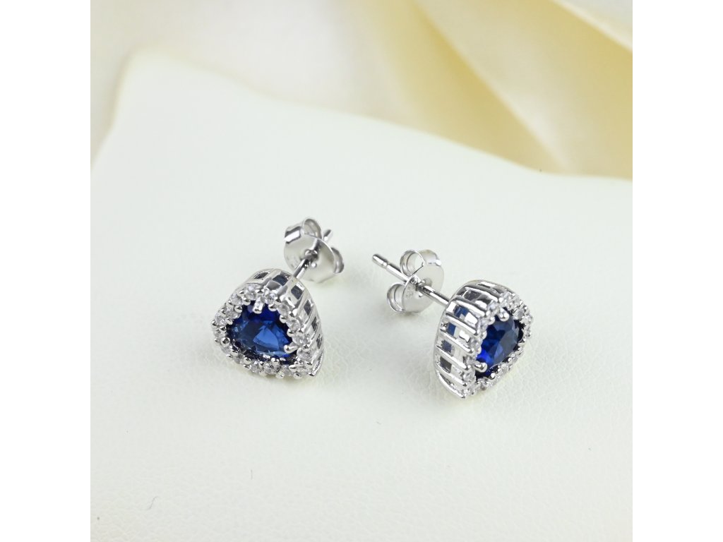 Stříbrná sada srdcových náušnic a náhrdelníku s modrým zirkonem - Meucci SS368S