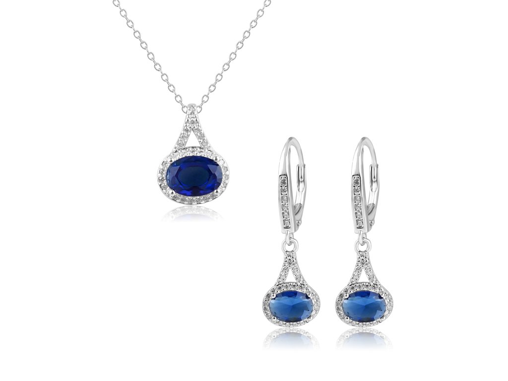 Stříbrná sada visacích náušnic a náhrdelníku s modrým oválným zirkonem - Meucci SS371S
