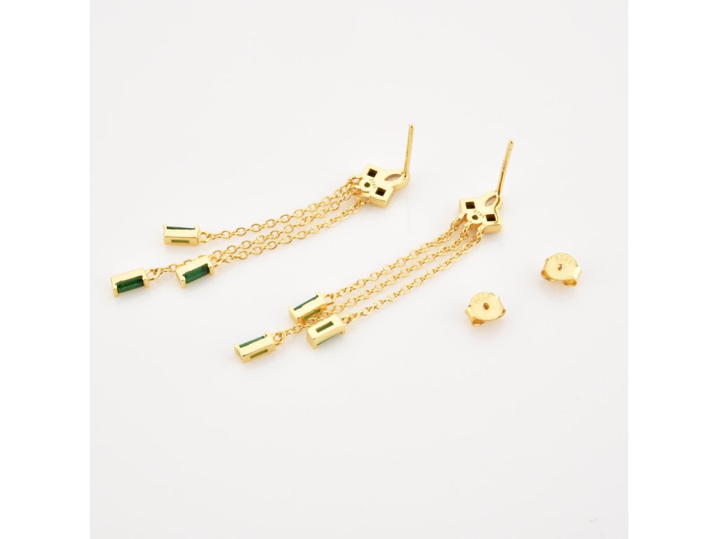 Každý detail náušnic byl pečlivě navržen, aby šperk působil sofistikovaně a zároveň moderně. Visací řetízky a drobné kamínky vytvářejí zajímavou hru tvarů a barev, která dělá náušnice originální a poutavé.