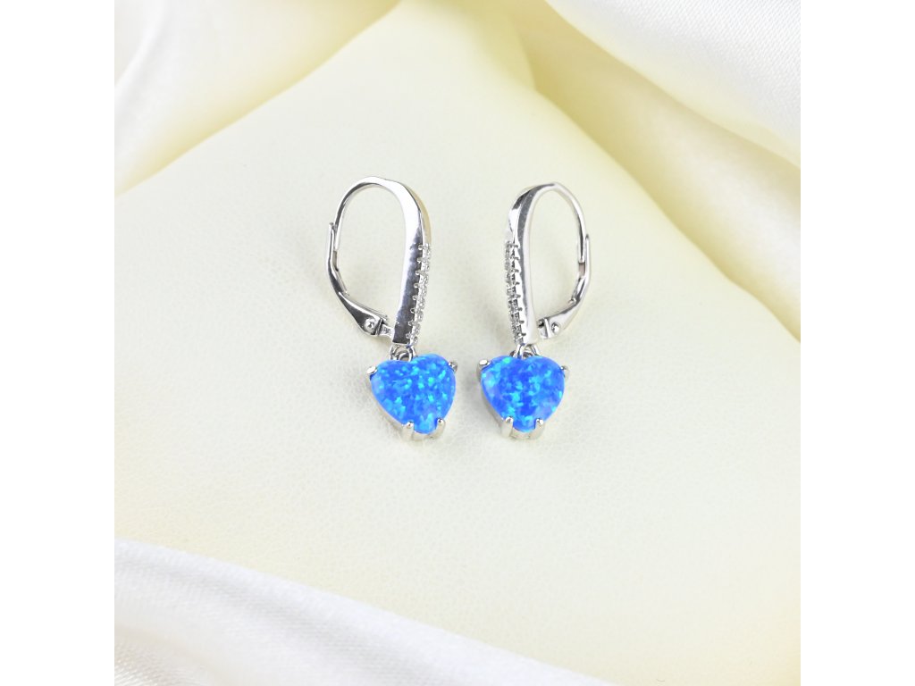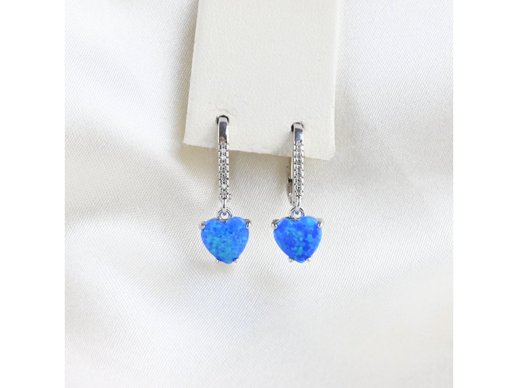 Stříbrné náušnice srdíčka s modrými opály - Meucci SE444