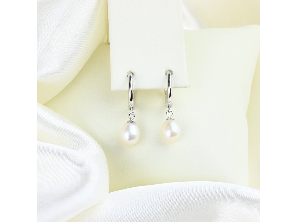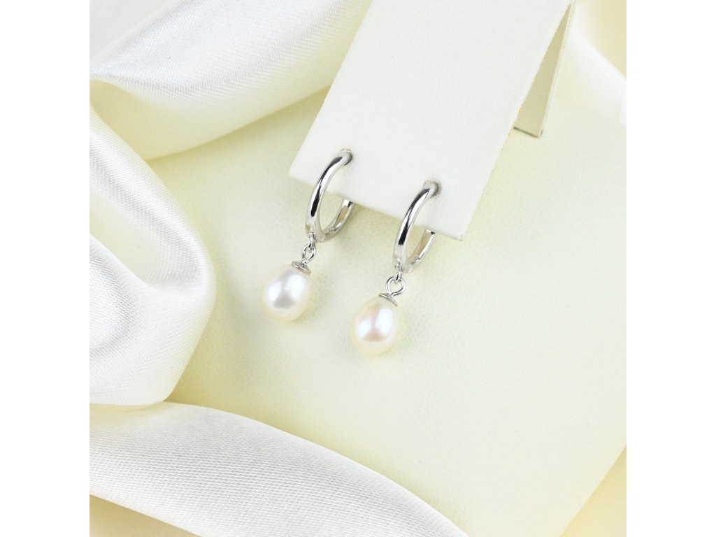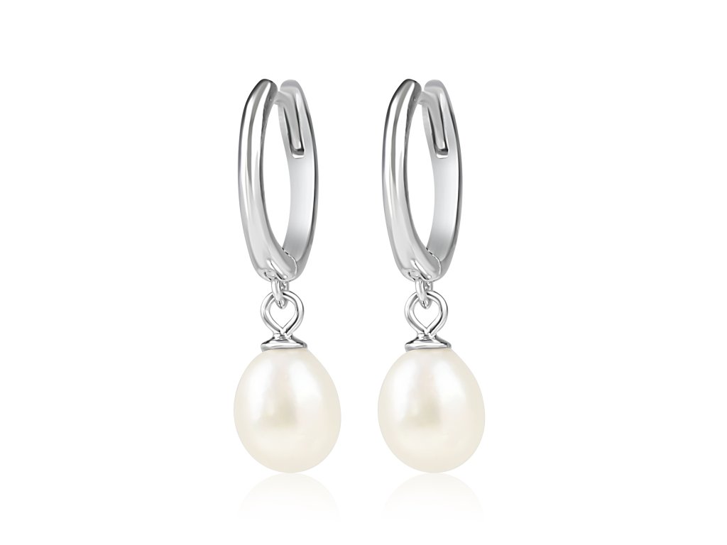 Stříbrné visací náušnice s říční perlou - Meucci SP117E